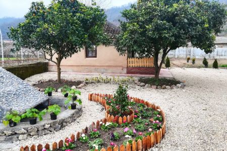 يضم هذا المنتجع البيئي منزلا ريفيا ومنزلا من القش وكوخا خشبيا تم إنشاؤه على أرض بمساحة 6,000 متر، كما يمكن طلب وجبات مثل الدجاج المحشي، ميرزا قاسمي، ترش تريح، ثونجي، السمك المحشي، أو السمك المقلي بالدفع والترتيب المسبق.