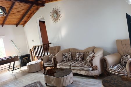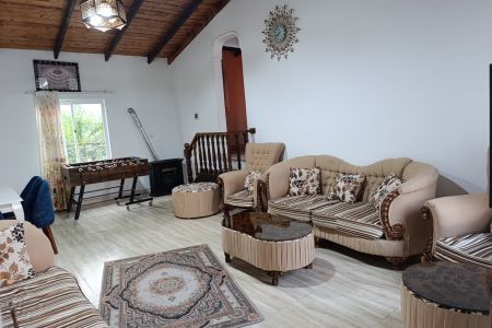 تحتوي الفيلا على مطبخ وغرفة معيشة وغرفتي نوم وحمام ومرحاض إيراني معا وتراس به طاولة وكراسي تواجه الفناء وعريشة شواء تواجه الحديقة بالإضافة إلى طاولة كرة يد وأرجوحة للترفيه عن النزلاء.