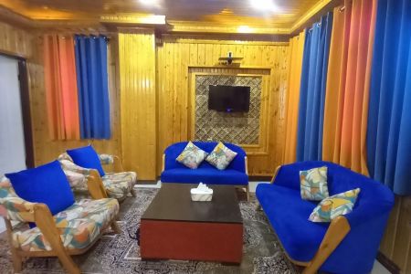 يحتوي هذا الجناح ذو التصميم الداخلي الخشبي على غرفة معيشة ومطبخ وغرفة نوم واحدة وشرفة وحمام مع حوض استحمام ساخن ومرحاض إيراني مع مرحاض غربي.