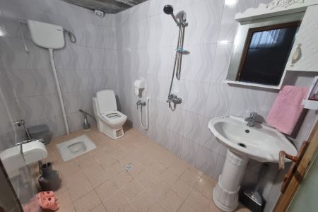 The amenities of this room (which lacks cooking facilities) include traditional bedding, a gas heater, and a bathroom with a Western and Iranian toilet.