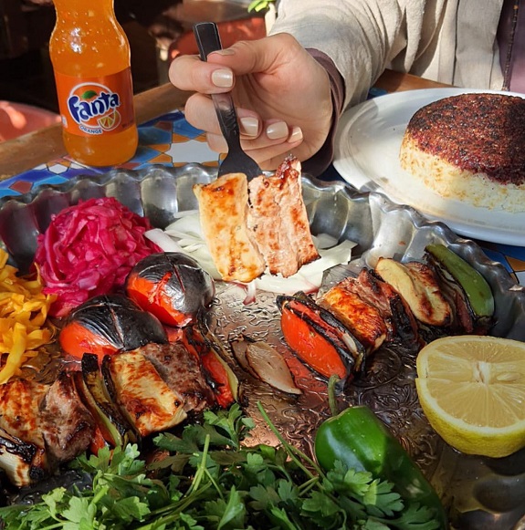 برنج را میتوانید به انتخاب خودتان کته زعفرانی، شوید، باقالی یا لبنانی سفارش دهید و همه غذاهای این رستوران در ظروف روحی سنتی با تزئینات رنگارنگ سرو میشوند که تجربهای لذتبخش و خاطرهانگیز برایتان رقم میزند.