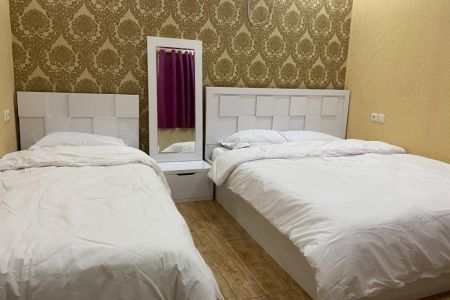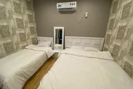 1 تخت یکنفره و 1 تخت دونفره در فضای مشترک
