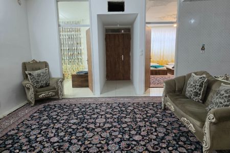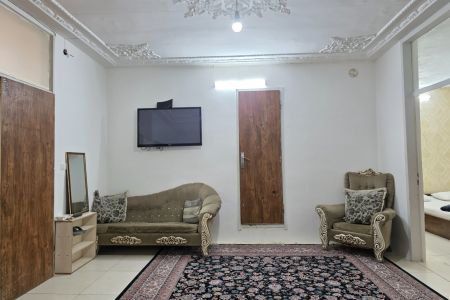 این خانه مبله دو خوابه در طبقه اول یک ساختمان دو طبقه چهار واحدی با دوربین مداربسته و نگهبان در فاصله نزدیک از حرم امام رضا و در مشهد واقع شده است.