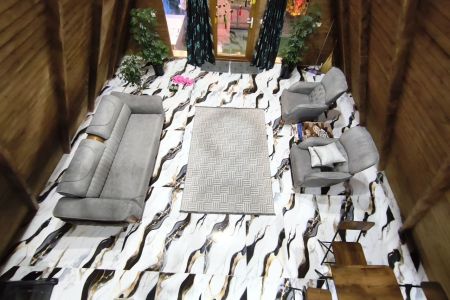 طراحی این کلبه به گونه ای است که طبقه پایین دارای پذیرایی، آشپزخانه، حمام و سرویس فرنگی با ایرانی می باشد و در طبقه بالا یک اتاق خواب قرار دارد.
