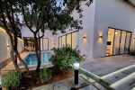 همچنین ویلا با داشتن فضای نشیمن و میز و صندلی در کنار استخر و تابی در حیاط فضایی دلنشین برای شب نشینی و دورهمی ها ایجاد کرده است.