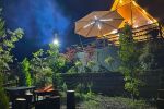محوطه اطراف کلبه به وسیله فنس محصور شده است و میزبان در همسایگی به فعالیت تجاری مشغول است.