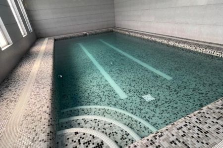 توضیحات: دمای استاندارد آبگرم استخر، در محدوده 28 الی 32 درجه سانتیگراد است. دوش در فضای استخر قرار دارد.