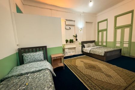 1 تخت یکنفره، 1 تخت دونفره و 3 دست رختخواب در فضای مشترک