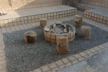 محوطه حیاط مجموعه از چهار طرف با دیوار محصور شده و میزبان در همین محوطه سکونت دارد.