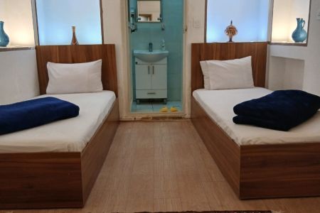 امکانات این اتاق (فاقد امکانات پخت و پز) شامل دو تخت تکنفره، یخچال و حمام با سرویس فرنگی می باشد، از مشاعات ساختمان نیز می توان به کافی شاپ و حیاط با صفا و دلنشین با تخت سنتی، حوض آب و میز و صندلی جهت شب نشینی و سرو غذا می باشد، همچنین یک سرویس ایرانی، فرنگی و حمام نیز در حیاط تعبیه شده است.