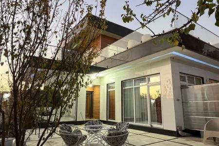 این ویلا با استخر سرپوشیده، تراسی دلباز و حیاطی محوطه سازی شده فضای مناسبی را برای دور همی مهمانان فراهم کرده است.