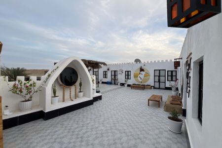 محوطه حیاط مجموعه با دیوار محصور شده و میزبان نیز در همین محوطه سکونت دارد.