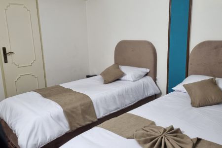 1 تخت یکنفره و 1 تخت دونفره در فضای مشترک