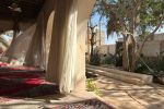در حیاط این اقامتگاه درختانی کهنسال مانند کرت، کنار، نخلهای تنومند، موز و گلهای کاغذی نیز وجود دارد که فضای مناسبی را برای مهمانان مجموعه فراهم کرده.